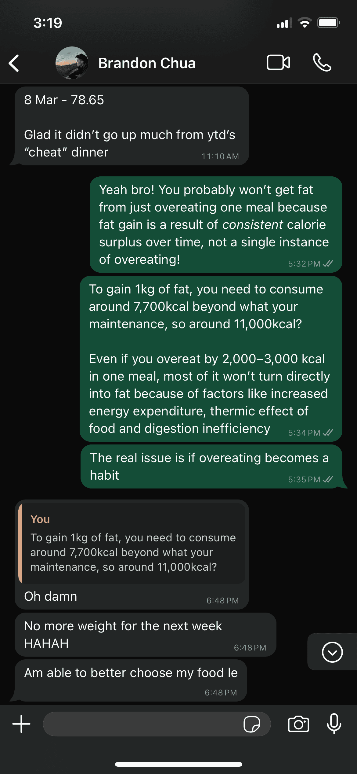 You don’t just follow a program—you learn why it works. 1. Train smart with structured, progressive workouts. 2. Track progress with daily WhatsApp check-ins and reviews. 3. Teach you to understand your body, form, nutrition, and habits—so you’re not dependent on a coach forever.